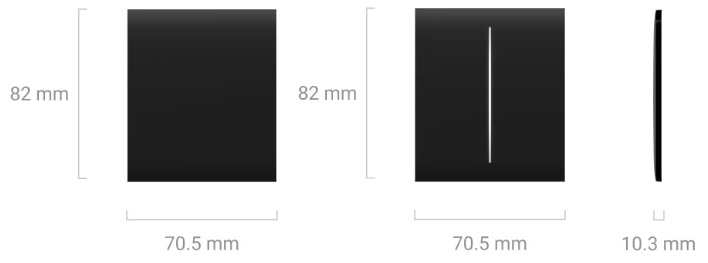 - CenterButton (1-gang / 2-way) — 82 × 70.53 × 10.26 mm