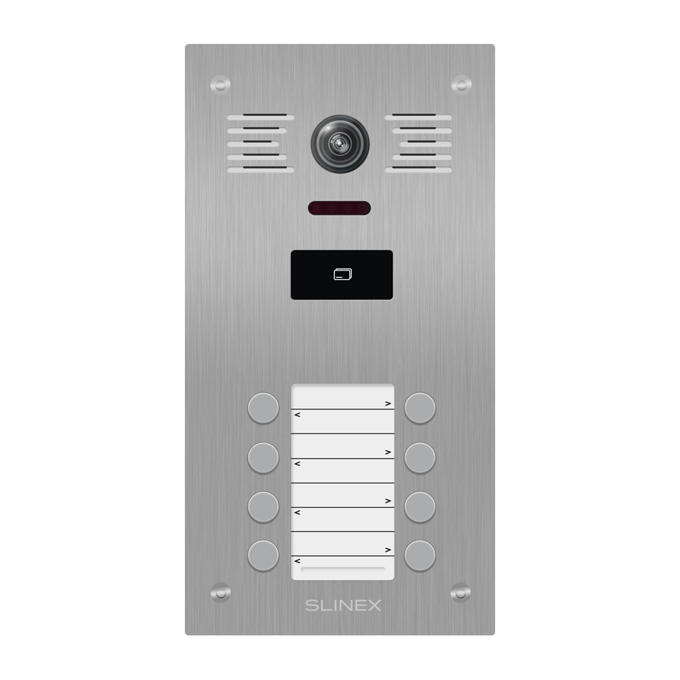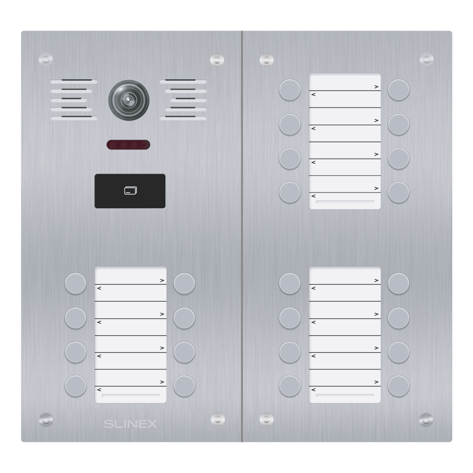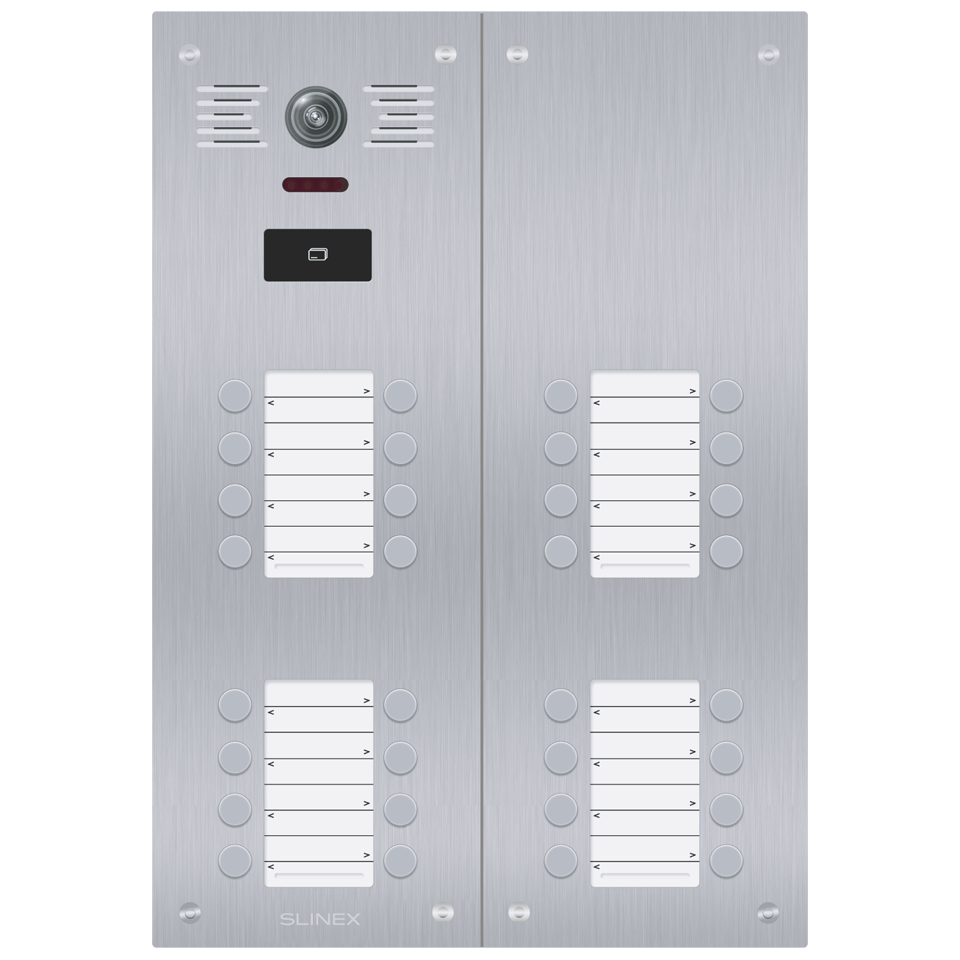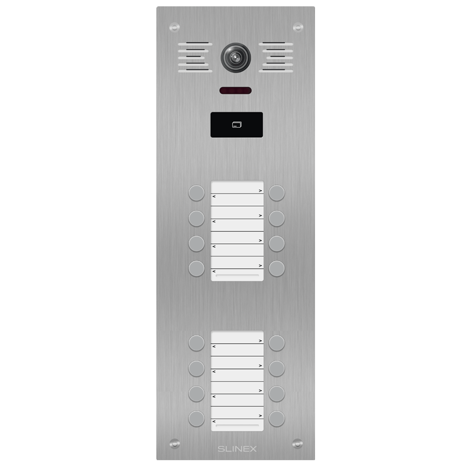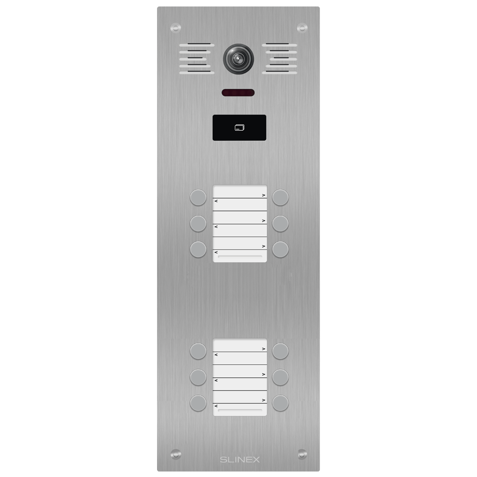 Séria Slinex Ling je vonkajšie riešenie pre mnoho bytov. Vyznačuje sa supermoderným dizajnom a flexibilným rozšírením od 6 do 36 používateľov. Zariadenie je vybavené radom pokročilých funkcií, ako je 2MP farebná kamera pre ostrý obraz, integrovaná čítačka kariet MIFARE pre bezpečnú kontrolu prístupu, mechanický IR filter pre lepšiu kvalitu nočného videnia a podsvietenie menovky pre jasnú identifikáciu za všetkých svetelných podmienok.