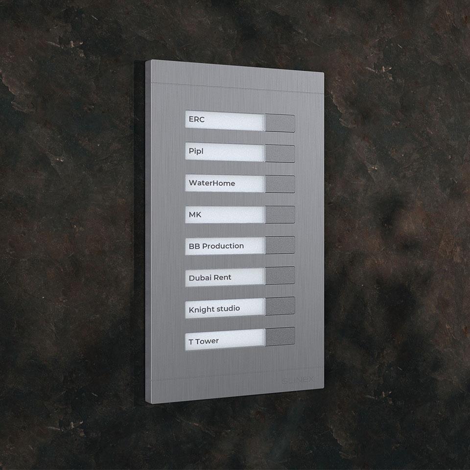 Slinex MA-08 je jedinečný rozširujúci modul v štýlovom dizajne. Umožňuje rozšíriť videovrátnikový systém až na 20 bytov.
